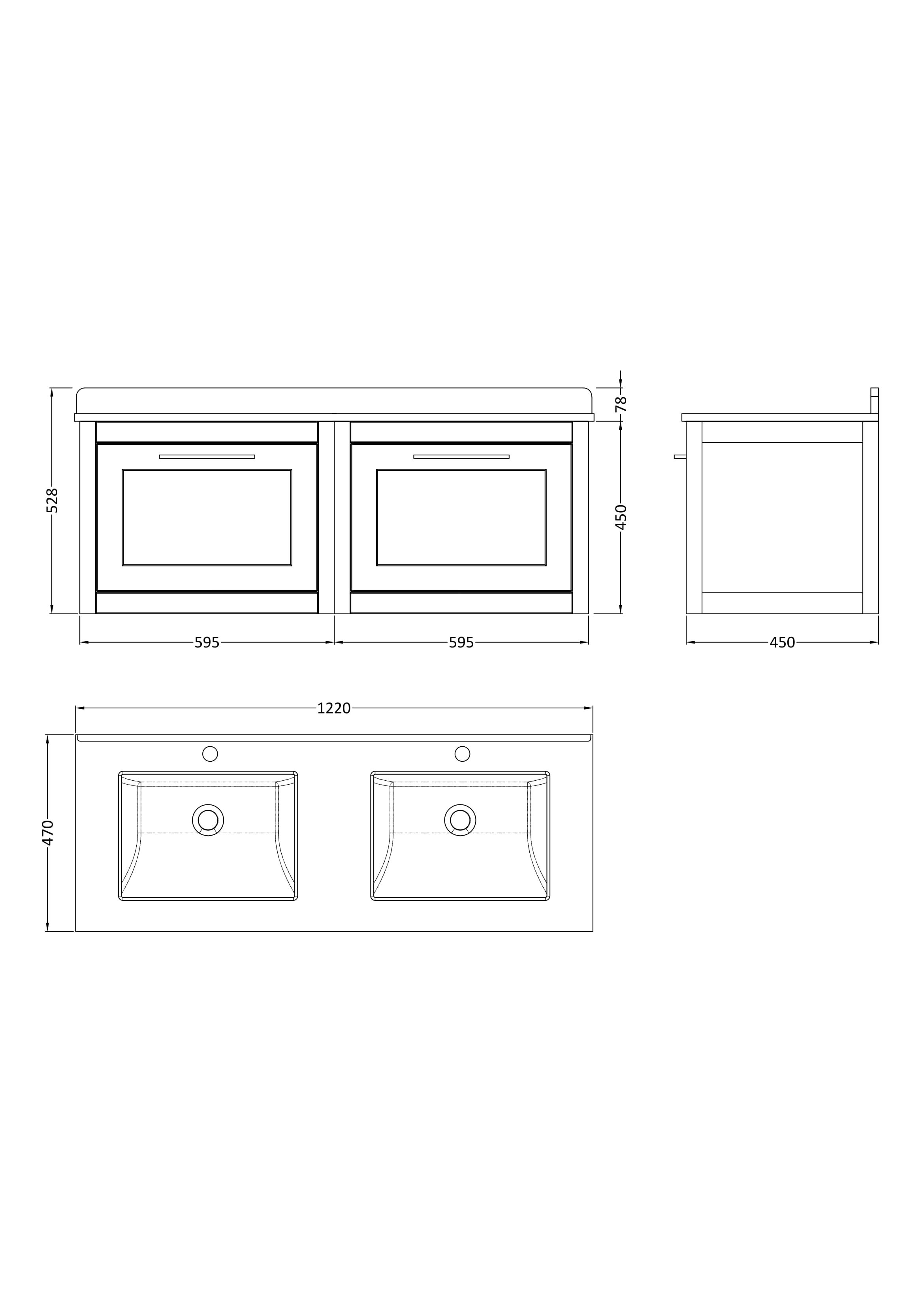 Crestfield 1200mm Wall Hung 2-Drawer Unit & 2 Bowl Marble
