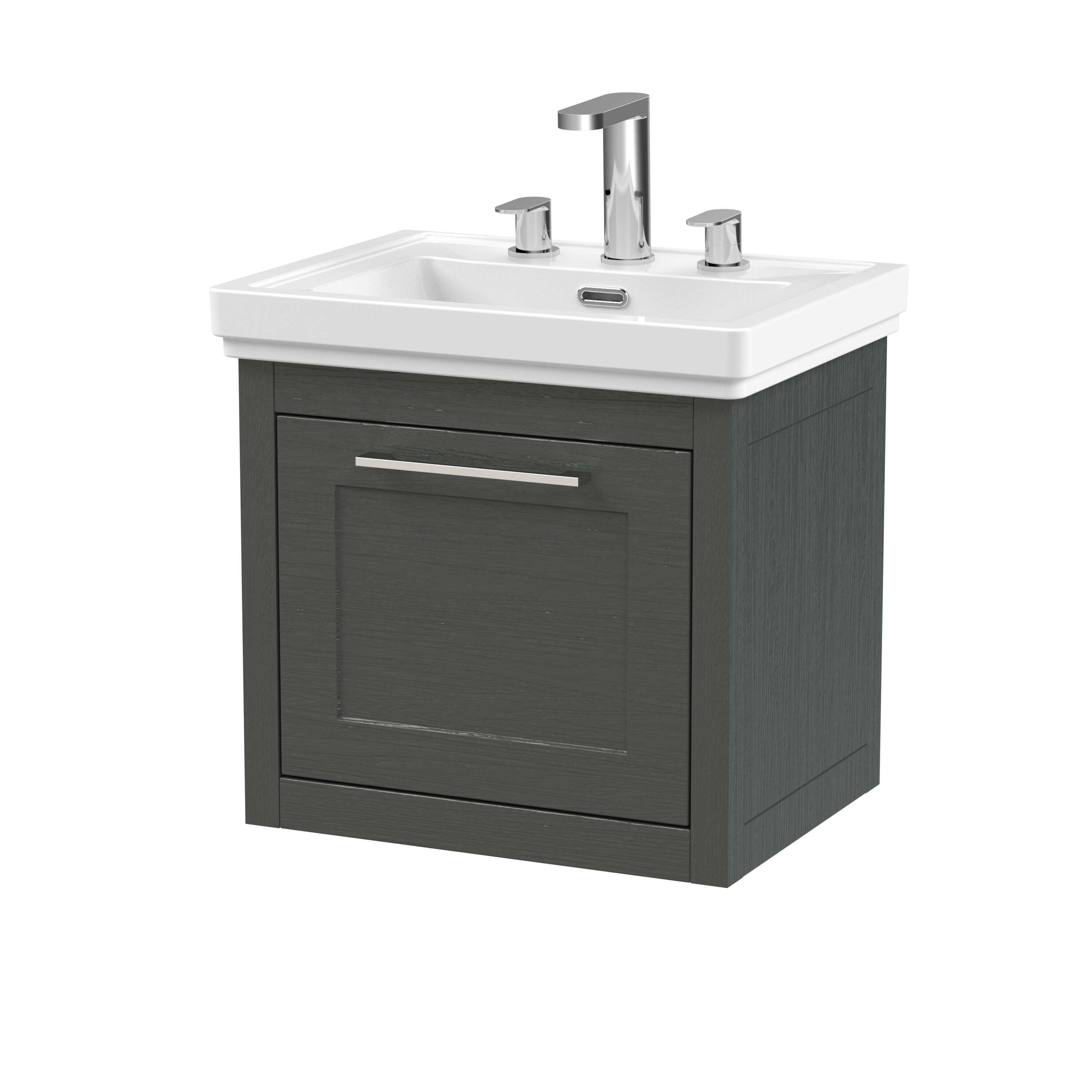 BC Designs Crestfield 500mm Wall Hung 1-Drawer Unit & Classic Basin 3TH - Dark Lead