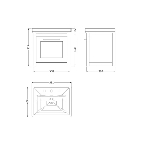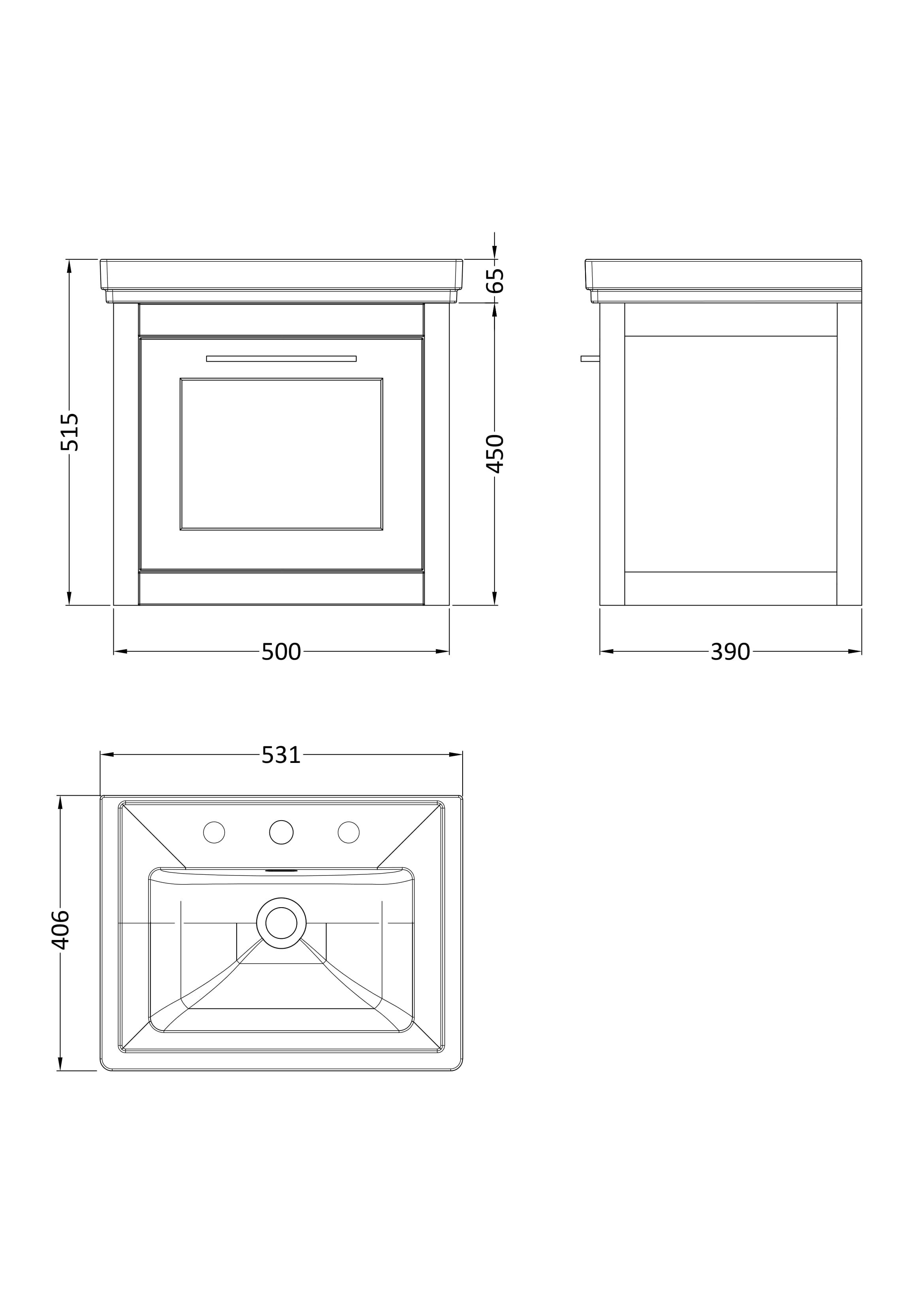Crestfield 500mm Wall Hung 1-Drawer Unit & Classic Basin 3TH