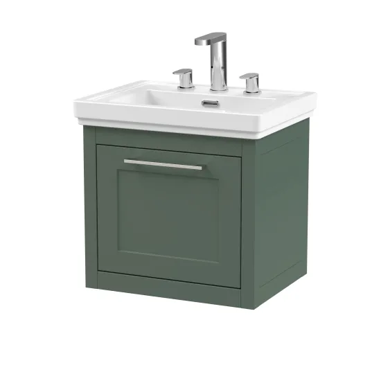BC Designs Crestfield 500mm Forest Green Wall Hung 1-Drawer Vanity Unit With 3 Taphole Basin