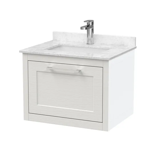 BC Designs Crestfield 600mm Nimbus White Wall Hung 1-Drawer Vanity Unit With Marble Top & Basin