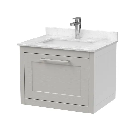 BC Designs Crestfield 600mm Earl's Grey Wall Hung 1-Drawer Vanity Unit with Marble Top & Basin
