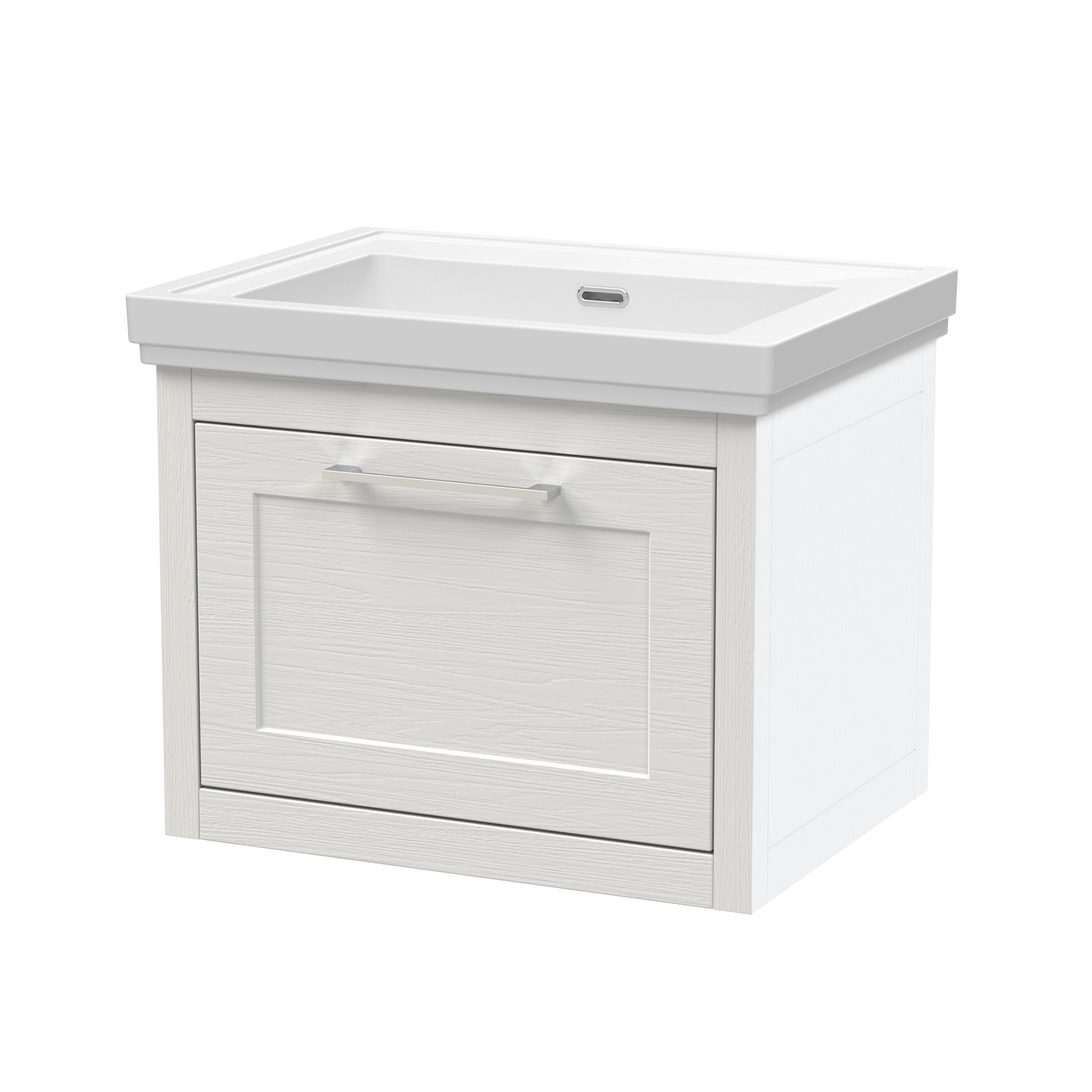 BC Designs Crestfield 600mm Wall Hung 1-Drawer Unit & Classic Basin 0TH - Nimbus White