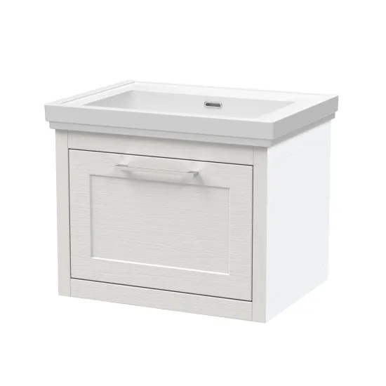 BC Designs Crestfield 600mm Nimbus White Wall Hung 1-Drawer Vanity Unit With Basin