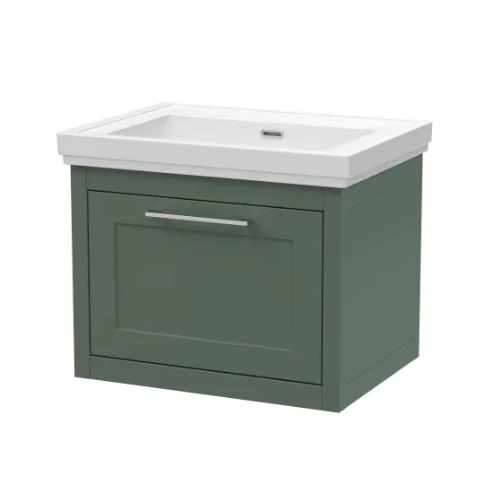BC Designs Crestfield 600mm Wall Hung 1-Drawer Unit & Classic Basin 0TH - Forest Green