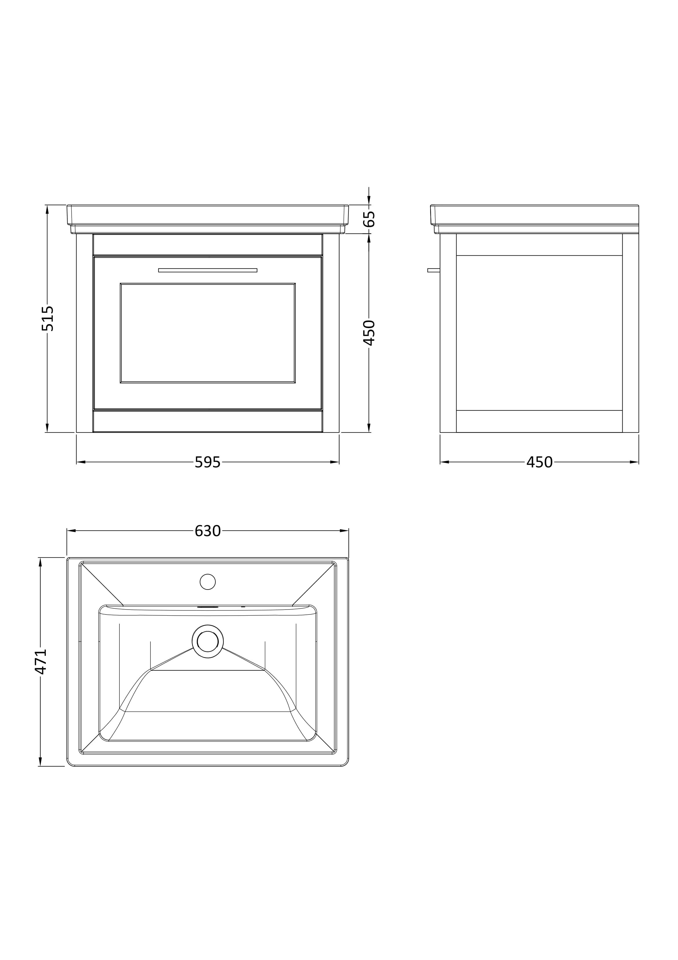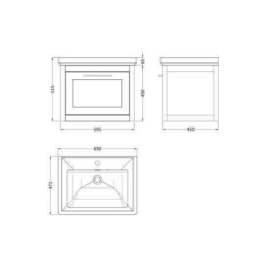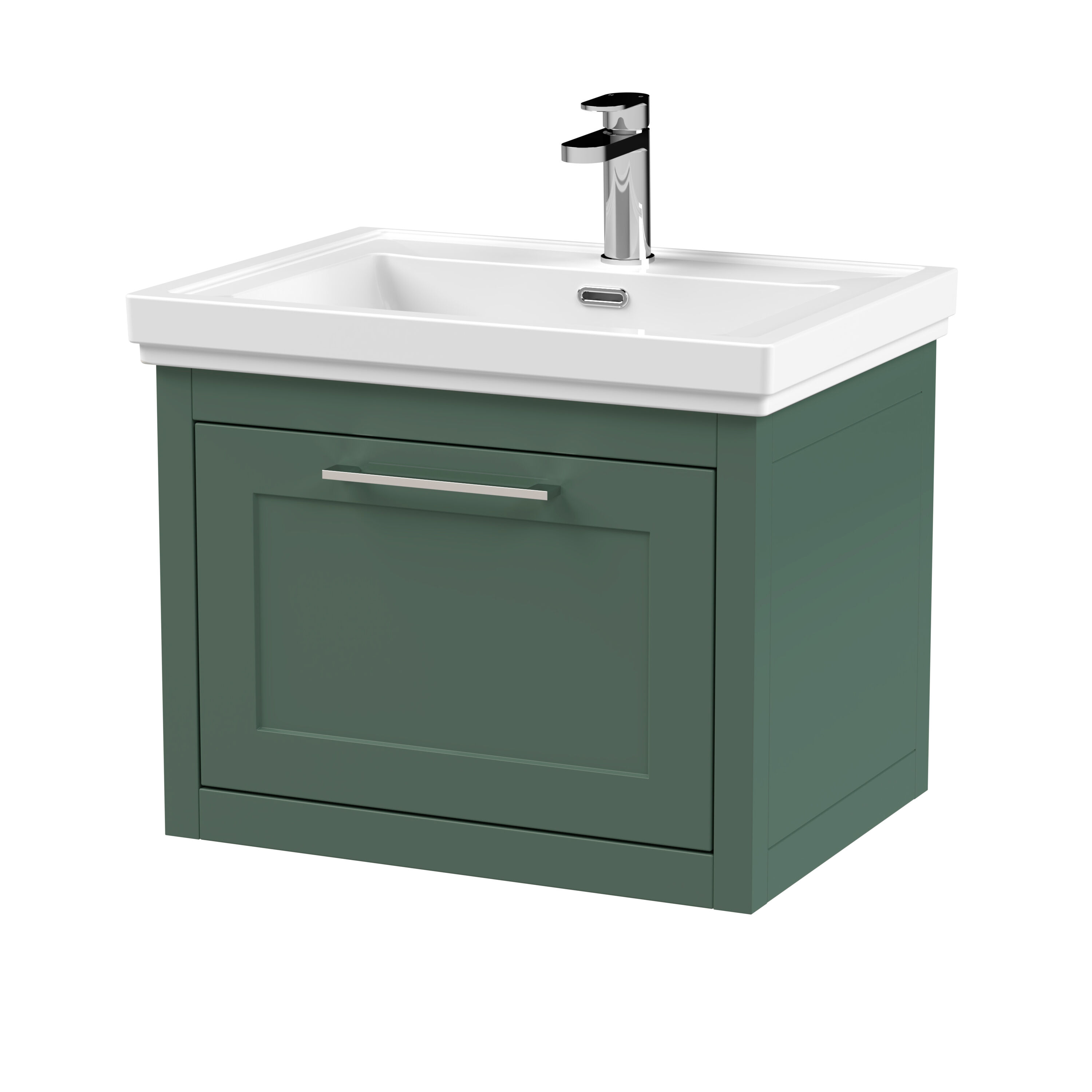 BC Designs Crestfield 600mm Wall Hung 1-Drawer Unit & Classic Basin 1TH - Forest Green