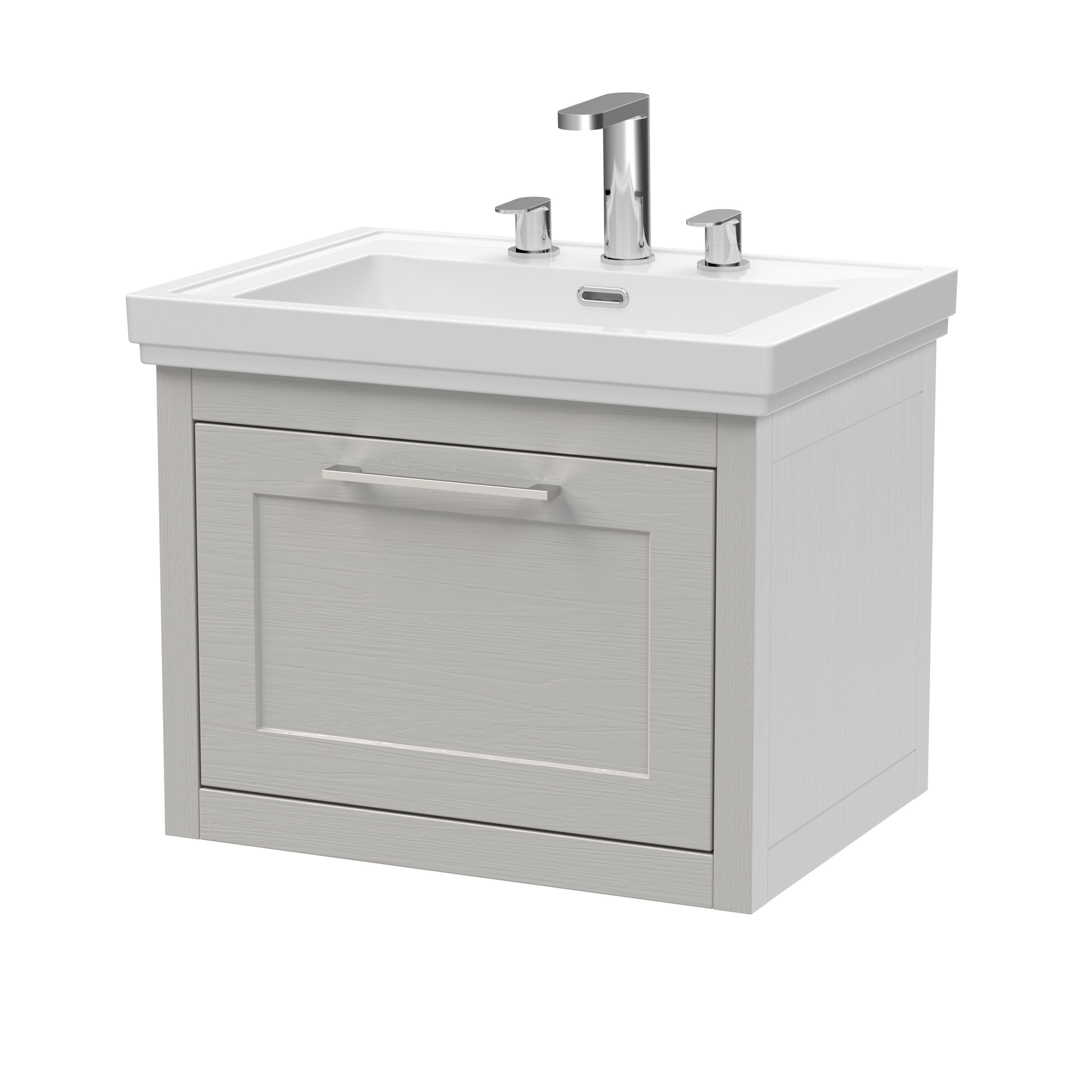 BC Designs Crestfield 600mm Wall Hung 1-Drawer Unit & Classic Basin 3TH - Earl's Grey