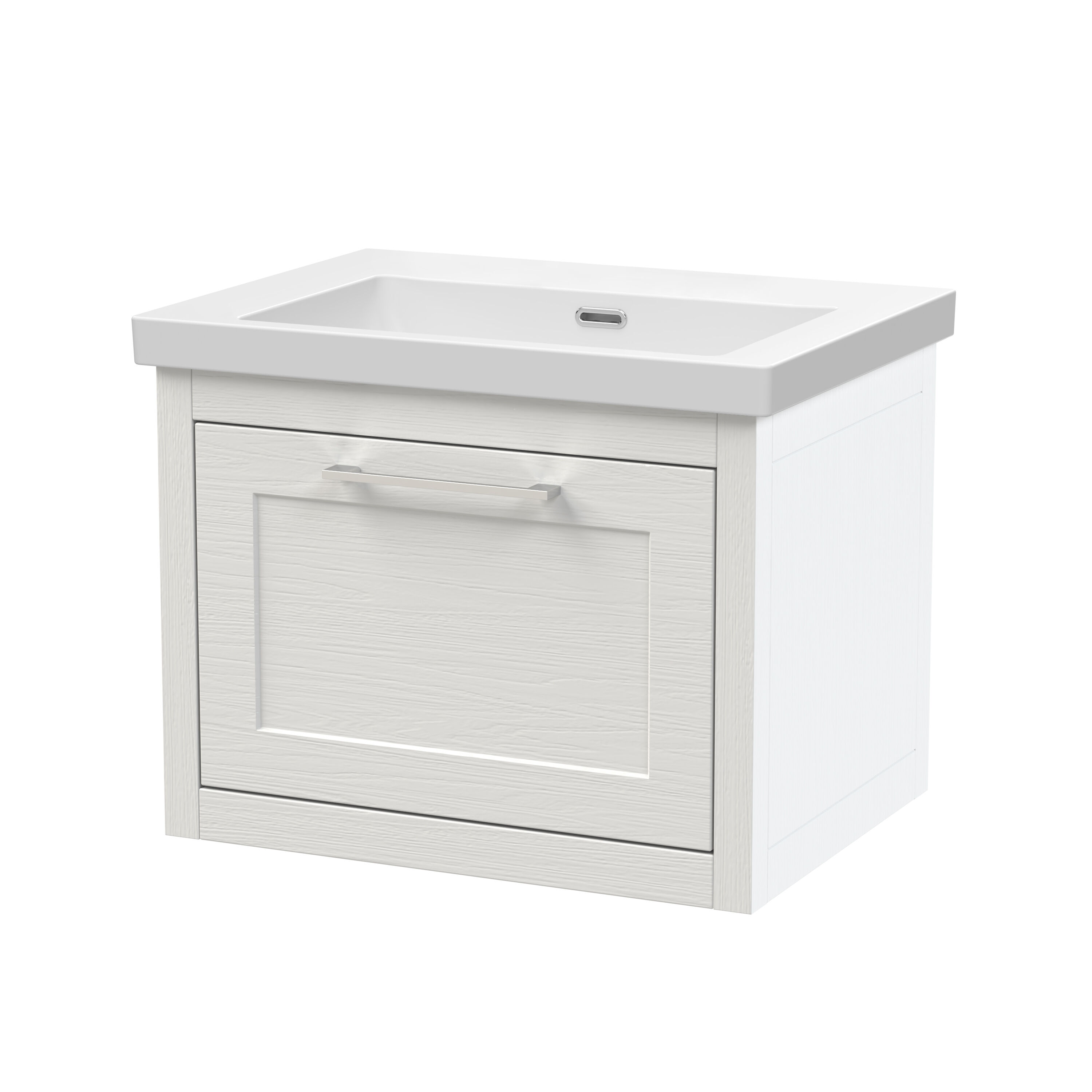 BC Designs Crestfield 600mm Wall Hung 1-Drawer Unit & Contemporary Basin 0TH - Nimbus White