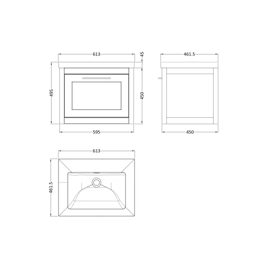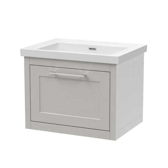 BC Designs Crestfield 600mm Wall Hung 1-Drawer Unit & Contemporary Basin 0TH - Earl's Grey