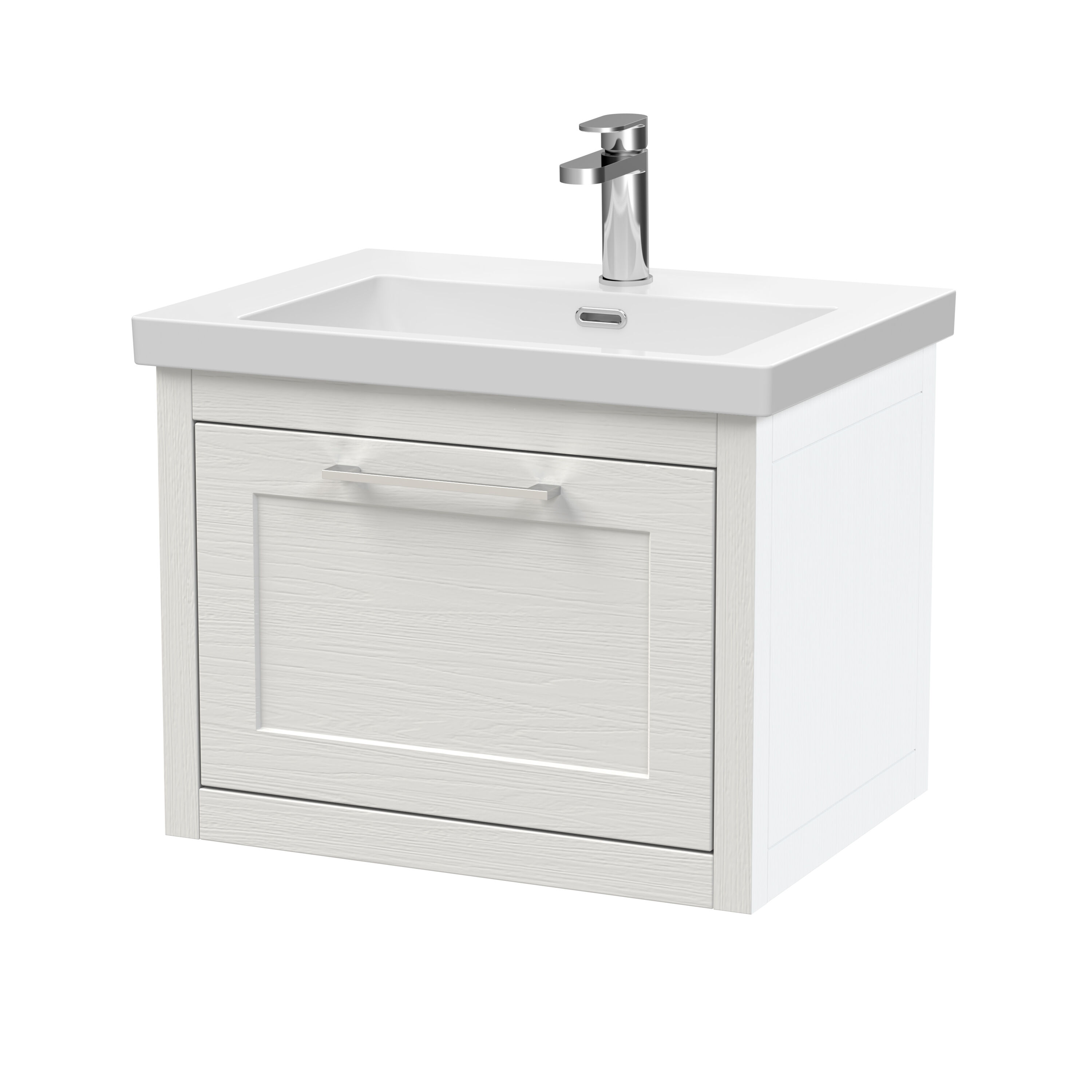 BC Designs Crestfield 600mm Wall Hung 1-Drawer Unit & Contemporary Basin 1TH - Nimbus White