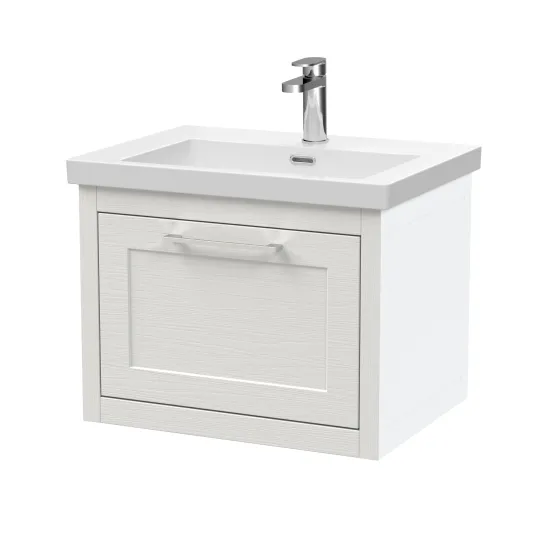 BC Designs Crestfield 600mm Wall Hung Nimbus White 1-Drawer Unit With Basin 1 Taphole