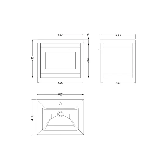 BC Designs Crestfield 600mm Wall Hung 1-Drawer Unit & Contemporary Basin 1TH - Forest Green