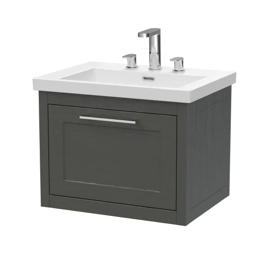 BC Designs Crestfield 600mm Wall Hung 1-Drawer Unit & Contemporary Basin 3TH - Dark Lead