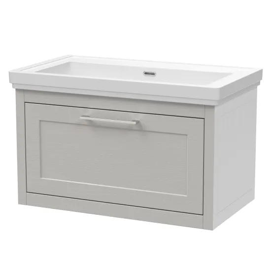 BC Designs Crestfield 800mm Wall Hung 1-Drawer Unit & Classic Basin 0TH - Earl's Grey