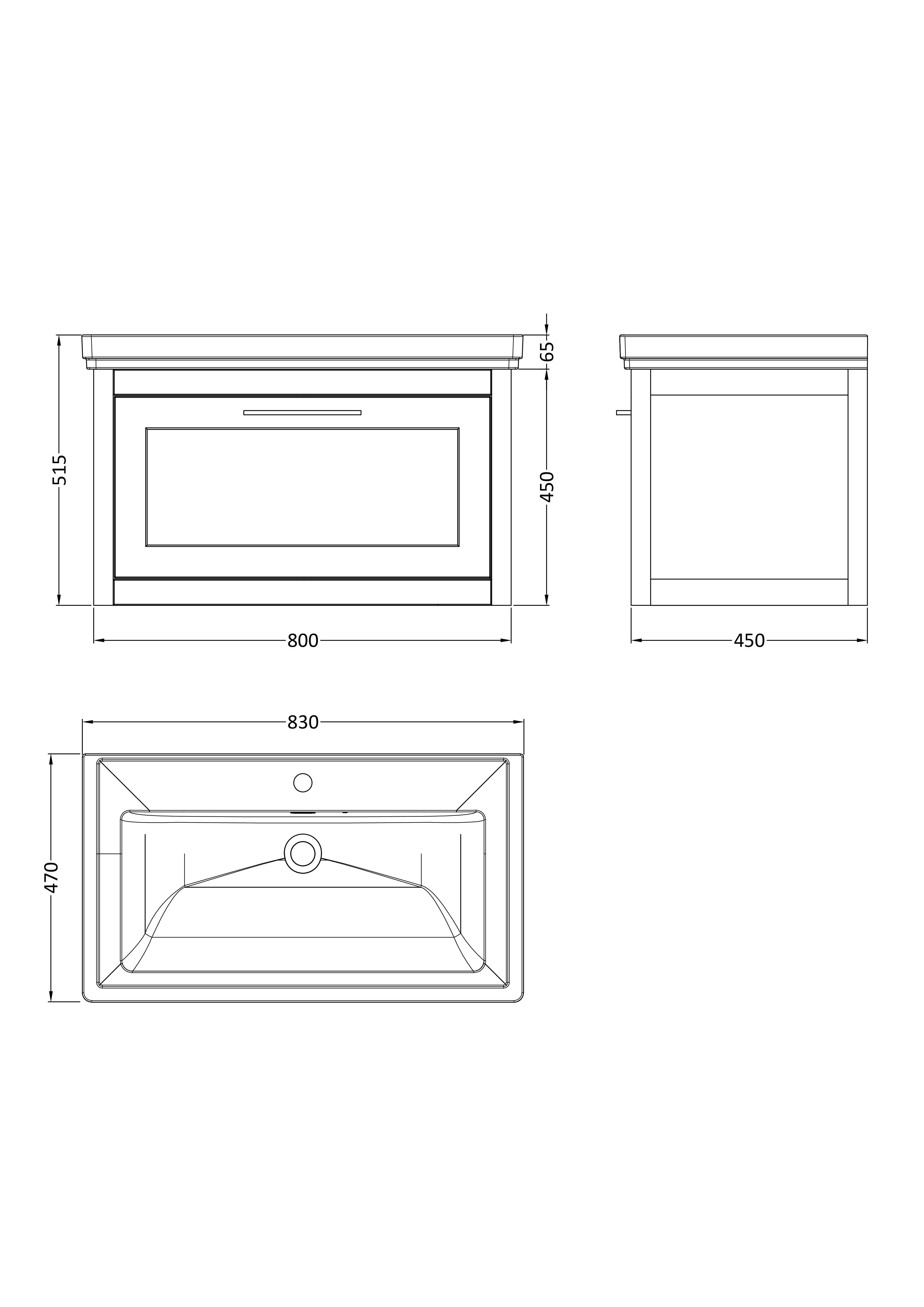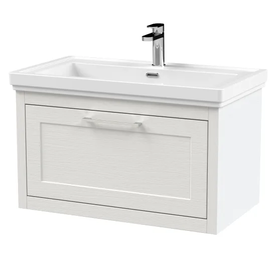 BC Designs Crestfield 800mm Wall Hung 1-Drawer Unit & Classic Basin 1TH - Nimbus White