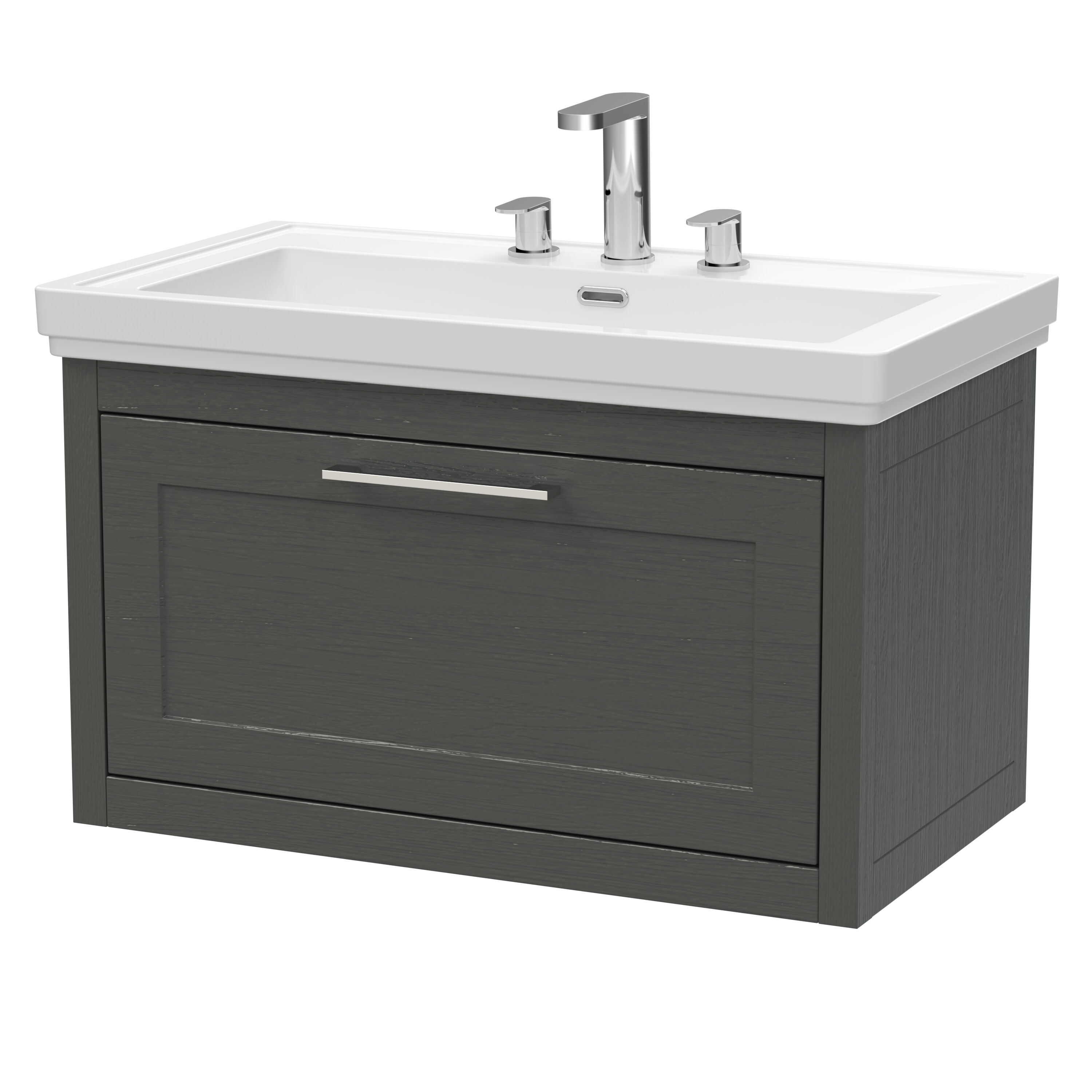 BC Designs Crestfield 800mm Wall Hung 1-Drawer Unit & Classic Basin 3TH - Dark Lead