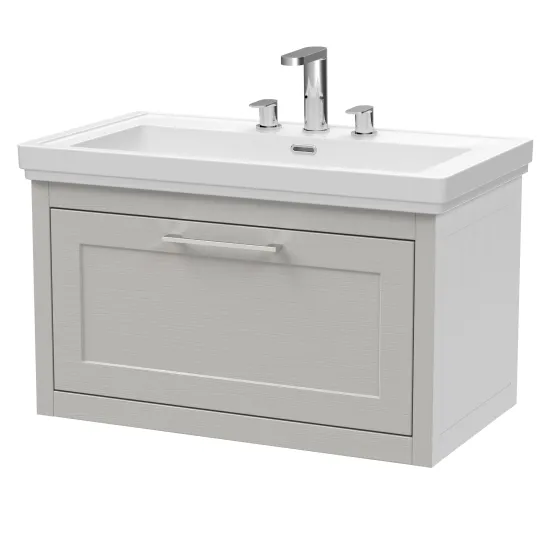BC Designs Crestfield 800mm Wall Hung Earl'S Grey 1-Drawer Vanity Unit With 3 Taphole Basin