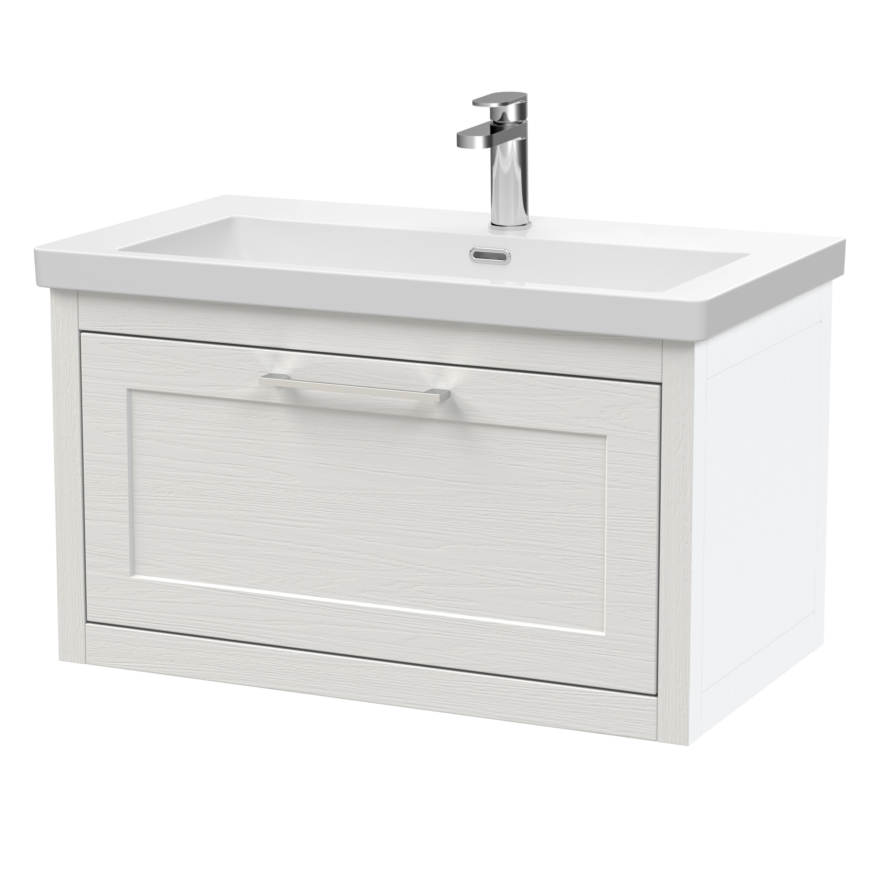 BC Designs Crestfield 800mm Wall Hung 1-Drawer Unit & Contemporary Basin 1TH - Nimbus White