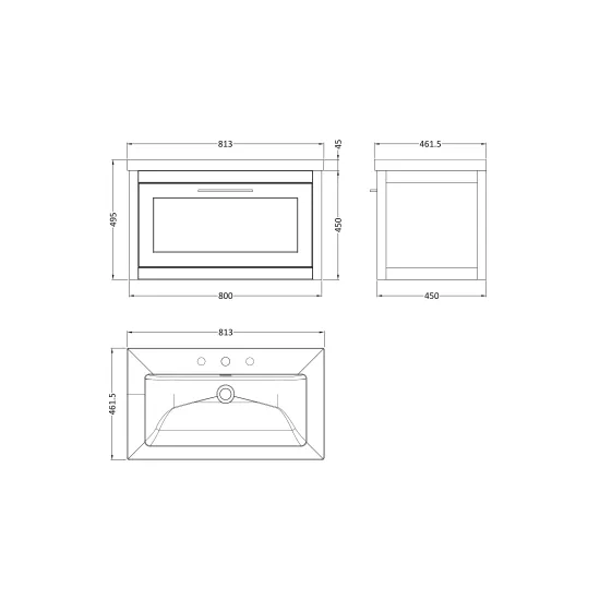 BC Designs Crestfield 813mm Wall Hung Nimbus White Vanity Unit With 1 Soft Close Drawer & 3 Taphole Basin
