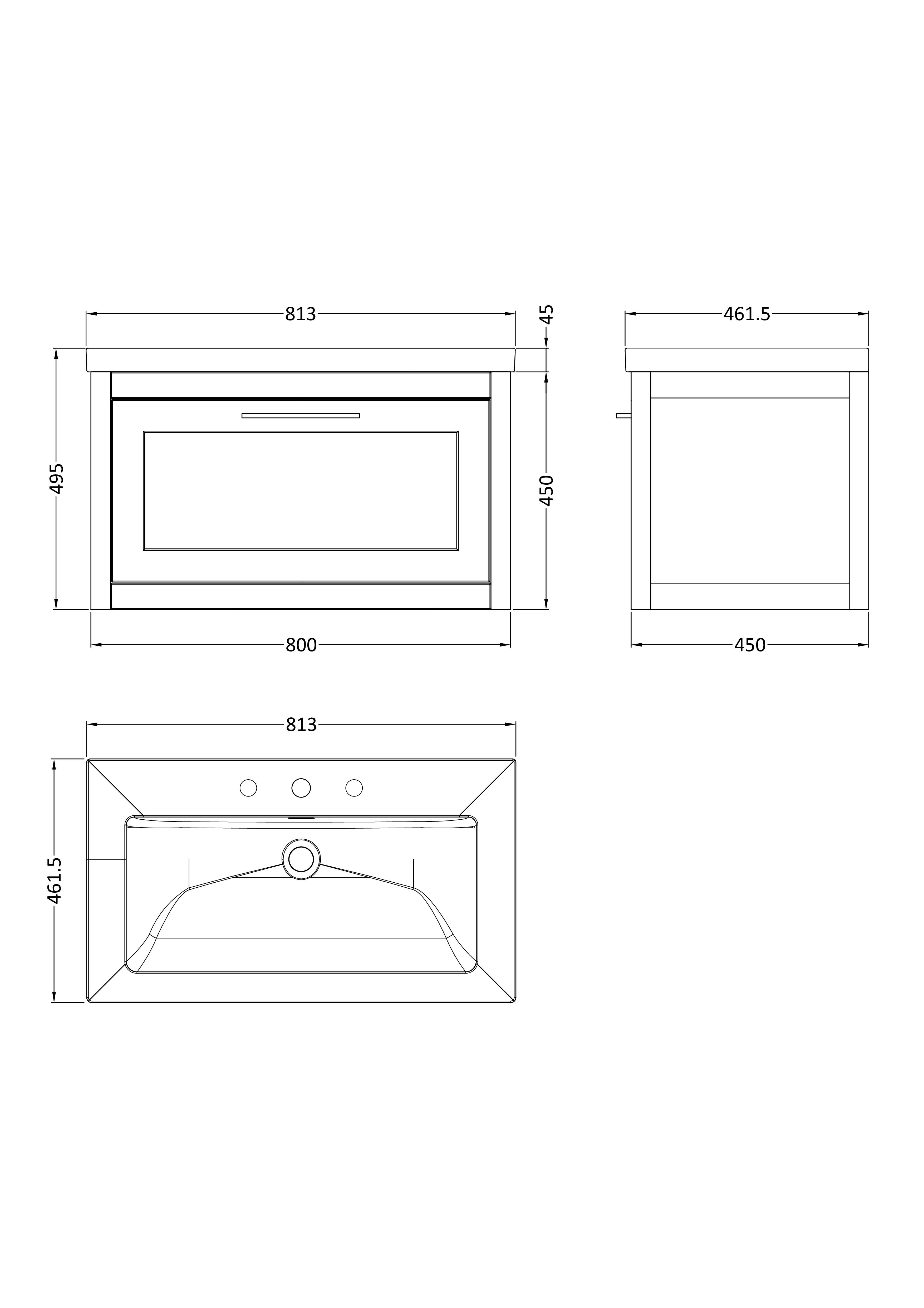 BC Designs Crestfield 800mm Wall Hung 1-Drawer Unit & Contemporary Basin 3TH - Forest Green