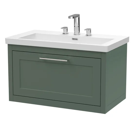 BC Designs Crestfield 800mm Forest Green Wall Hung 1-Drawer Vanity Unit Including 3 Taphole Basin