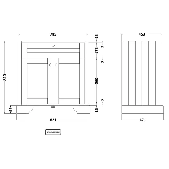 Old London Floor Standing 2 Door Basin Unit 800mm - Storm Grey