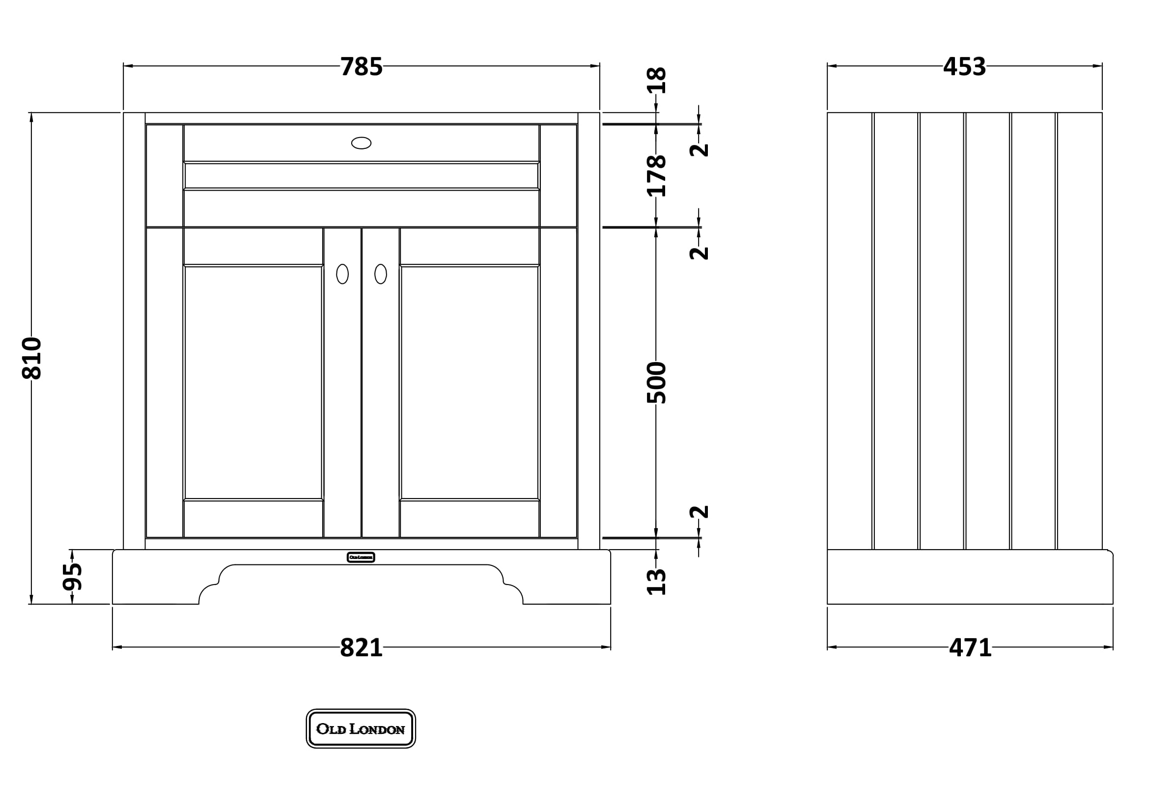 Old London Floor Standing 2 Door Basin Unit 800mm - Timeless Sand