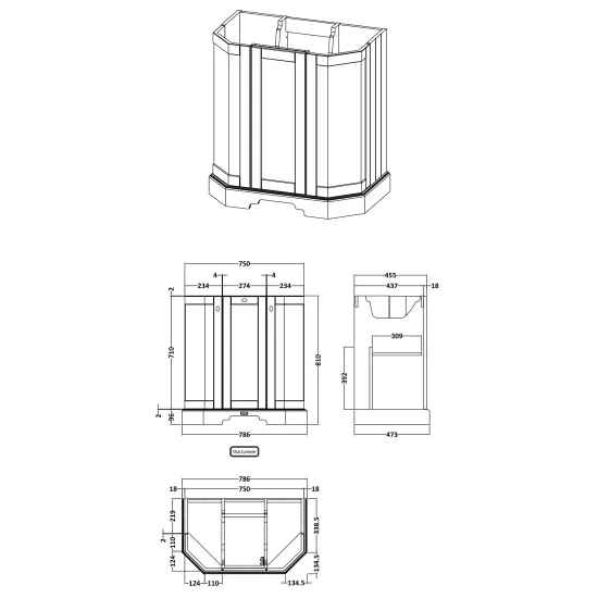 Floor Standing Angled 3 Door Basin Unit 750mm
