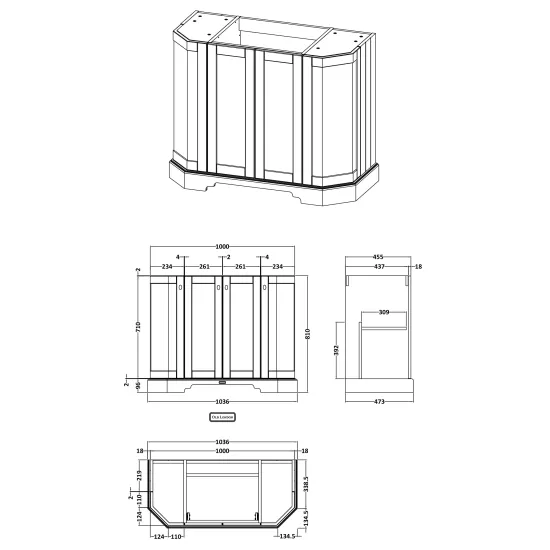 Floor Standing Angled 4 Door Basin Unit 1000mm