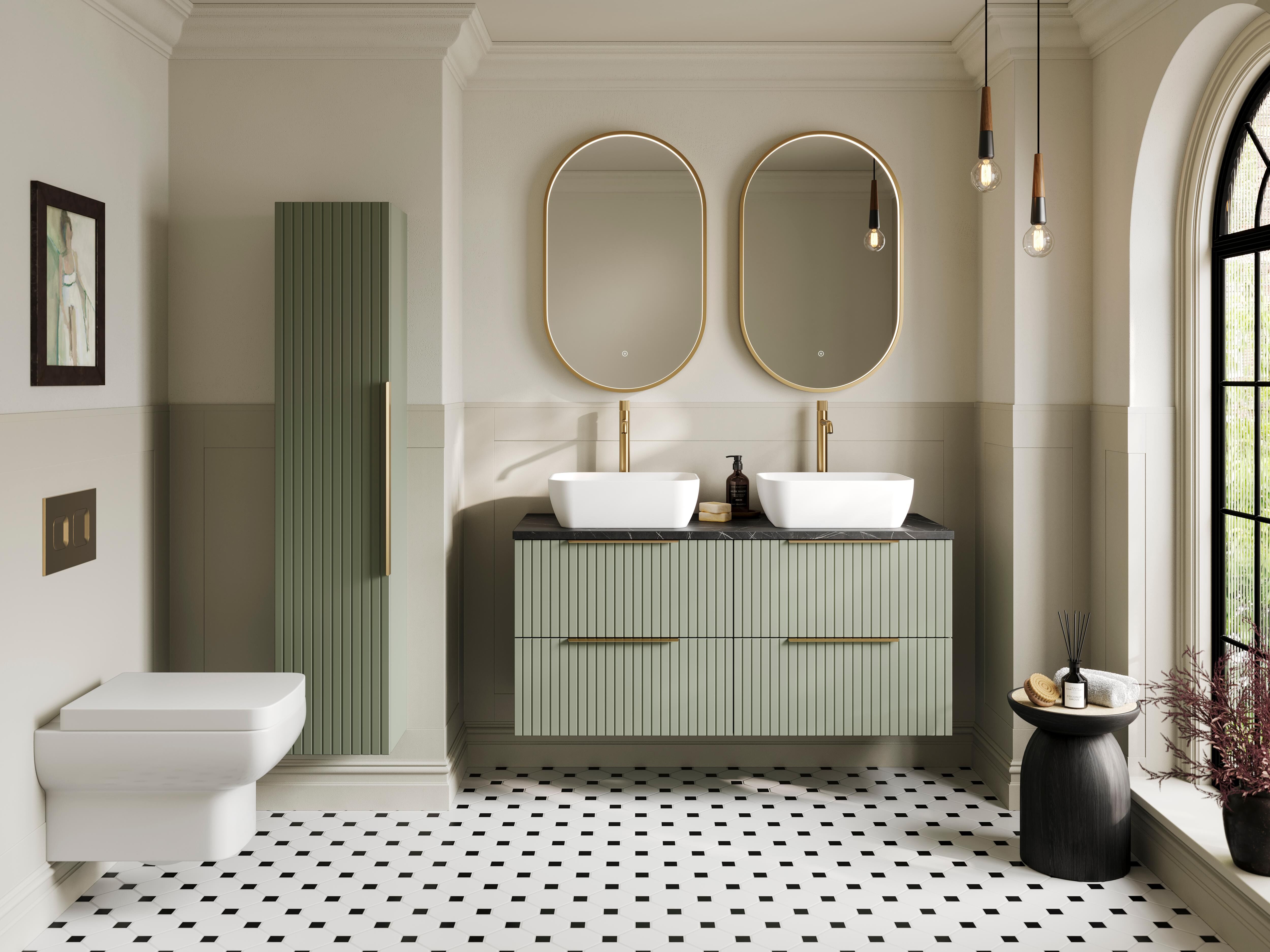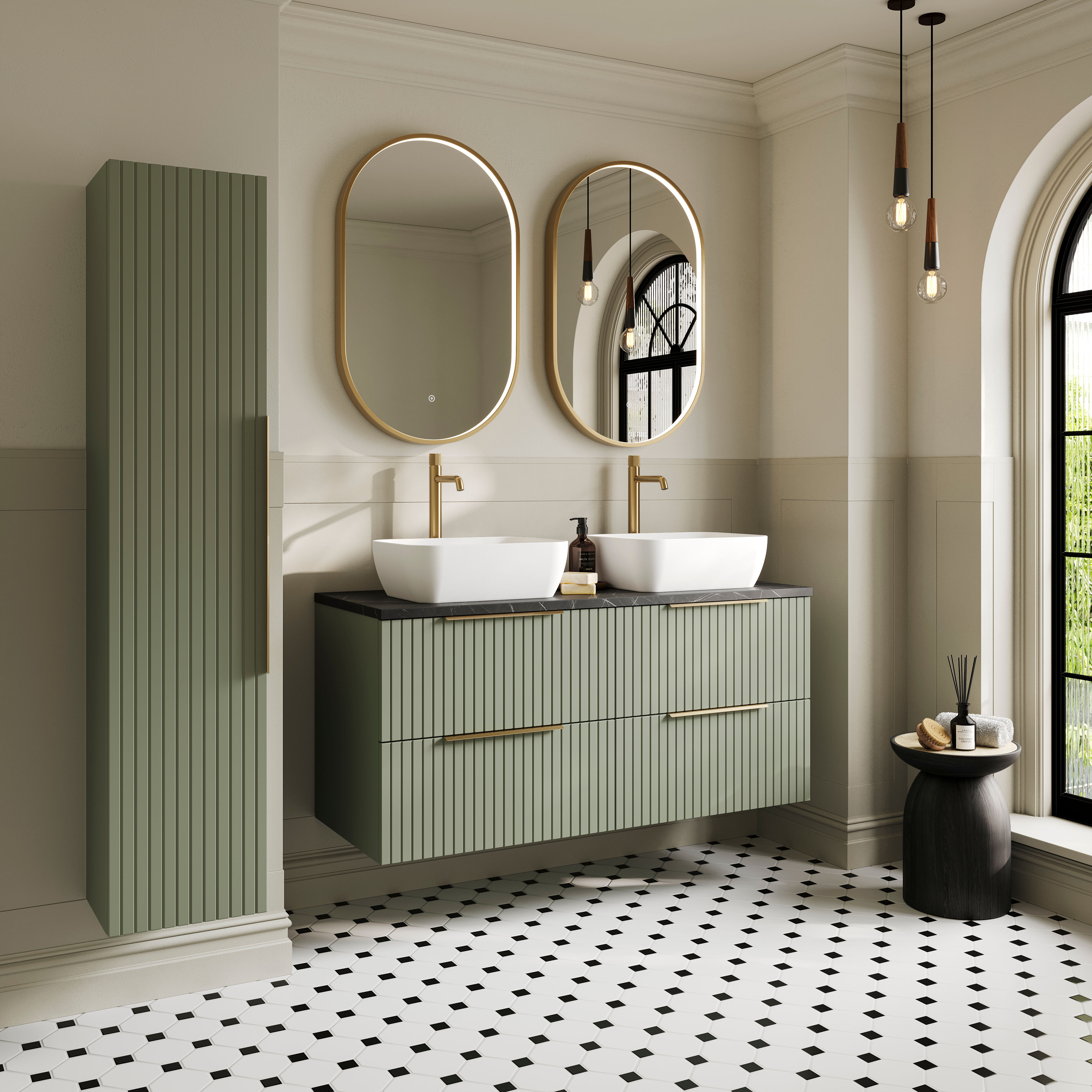 Nuie Lux Flume 600mm 2- Drawer Wall Hung Unit - Fern Green