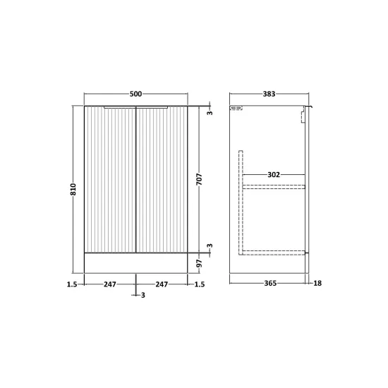 Hudson Reed Fluted 500mm Floor Standing 2-Door Unit - Satin Green