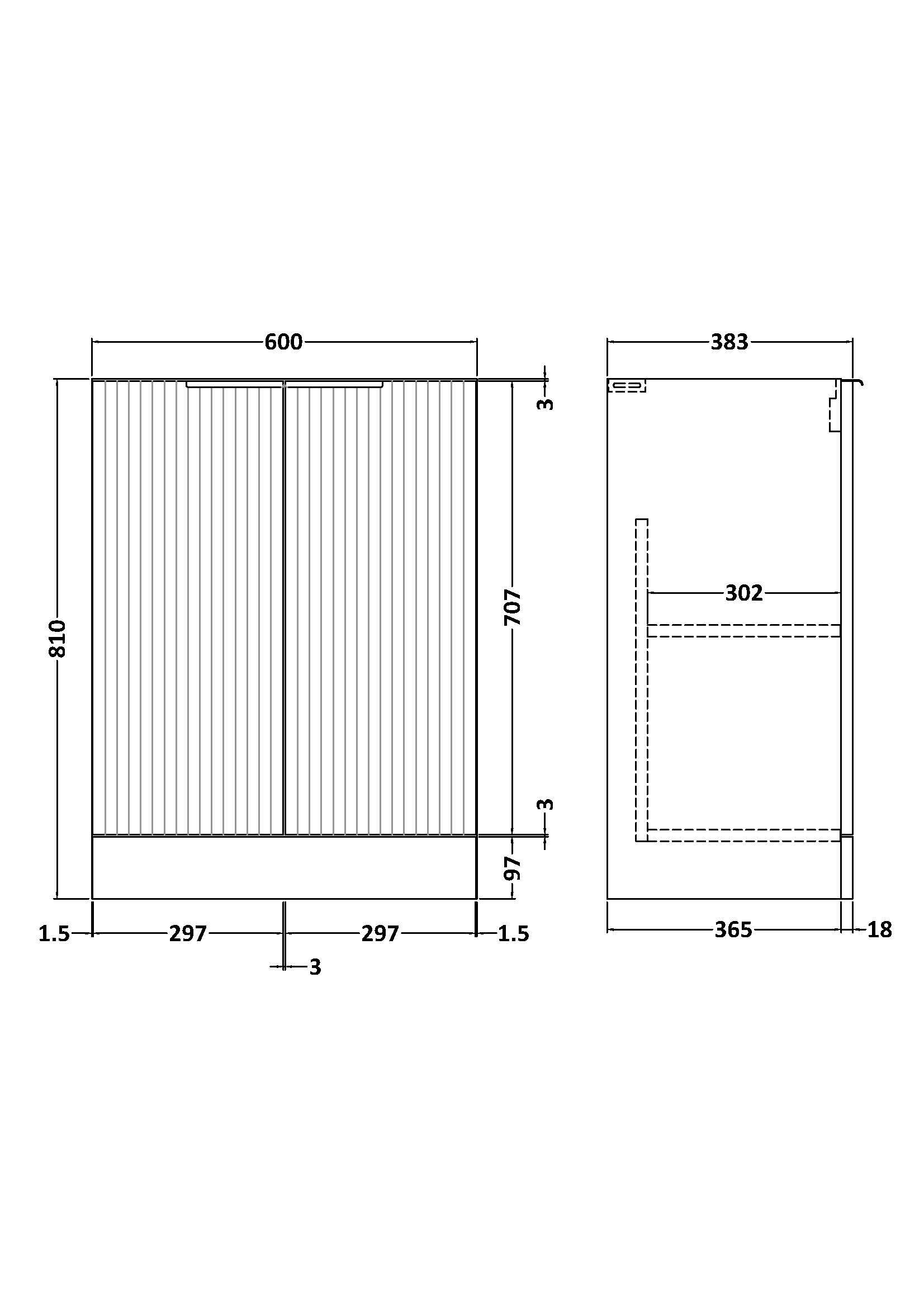 Fluted 600mm Floor Standing 2-Door Unit