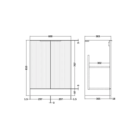 Hudson Reed Fluted 600mm Floor Standing 2-Door Unit - Satin Blue