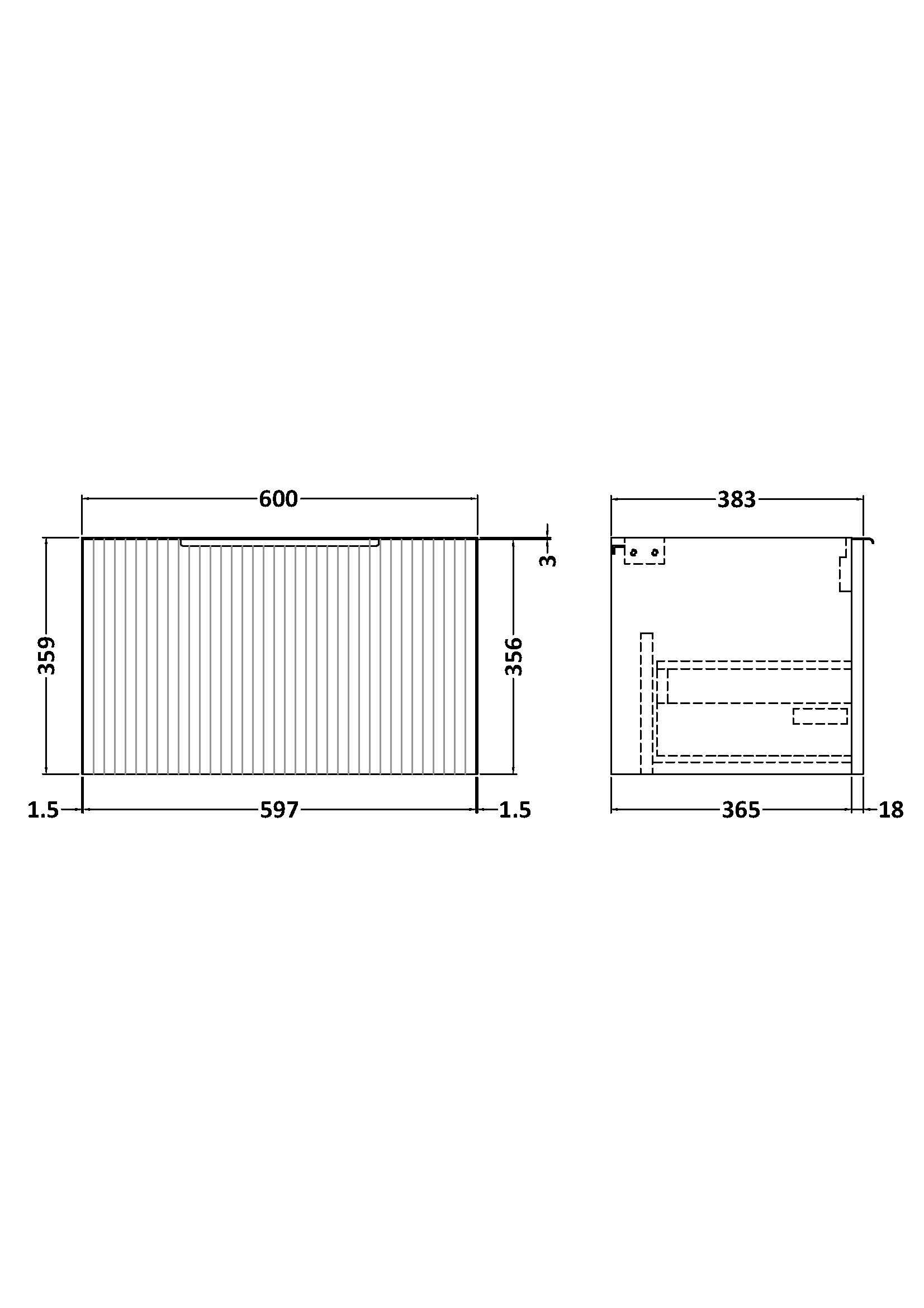Hudson Reed Fluted 600mm Wall Hung Single Drawer Unit - Satin Blue