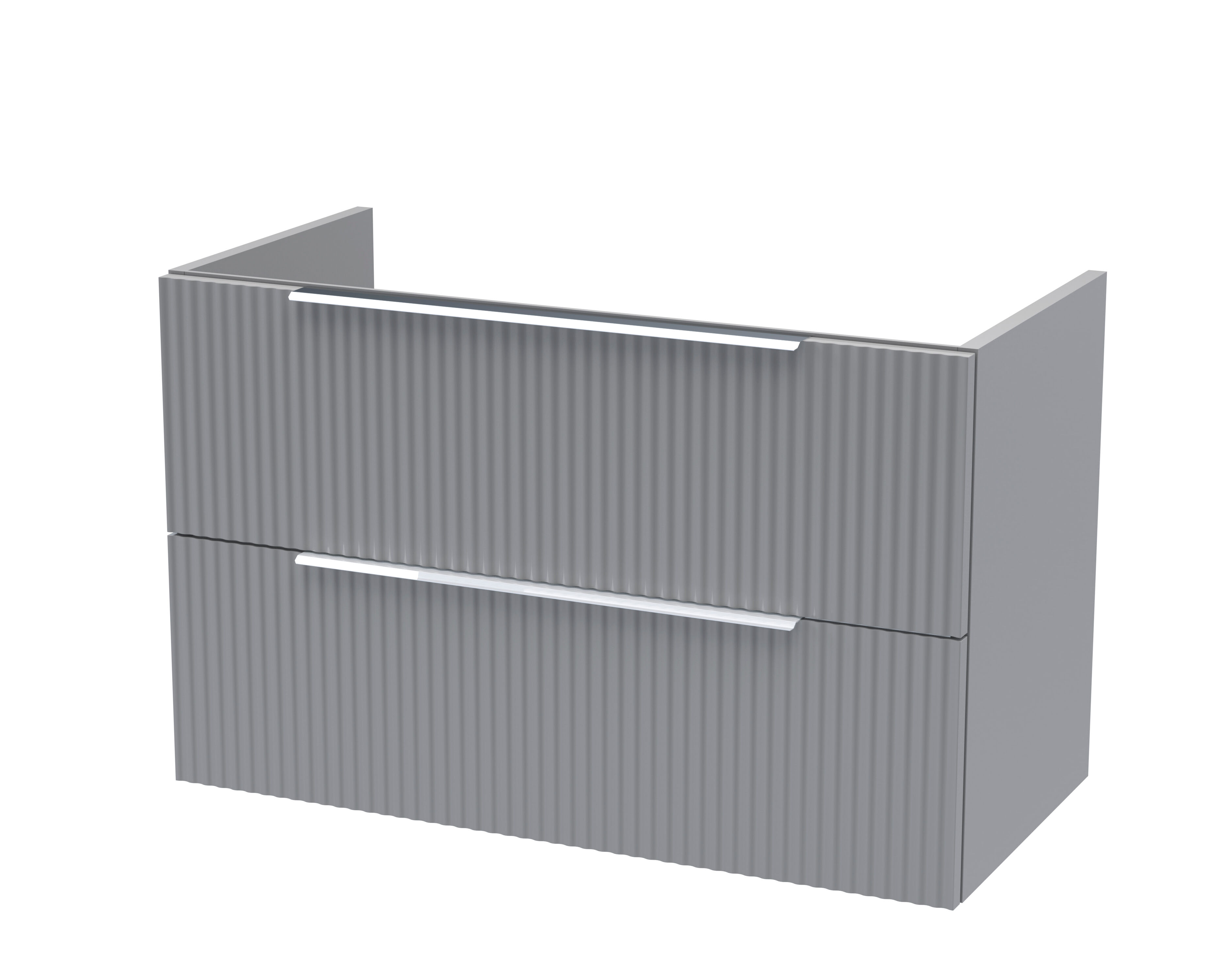 Hudson Reed Fluted 800mm Wall Hung 2-Drawer Unit - Satin Grey