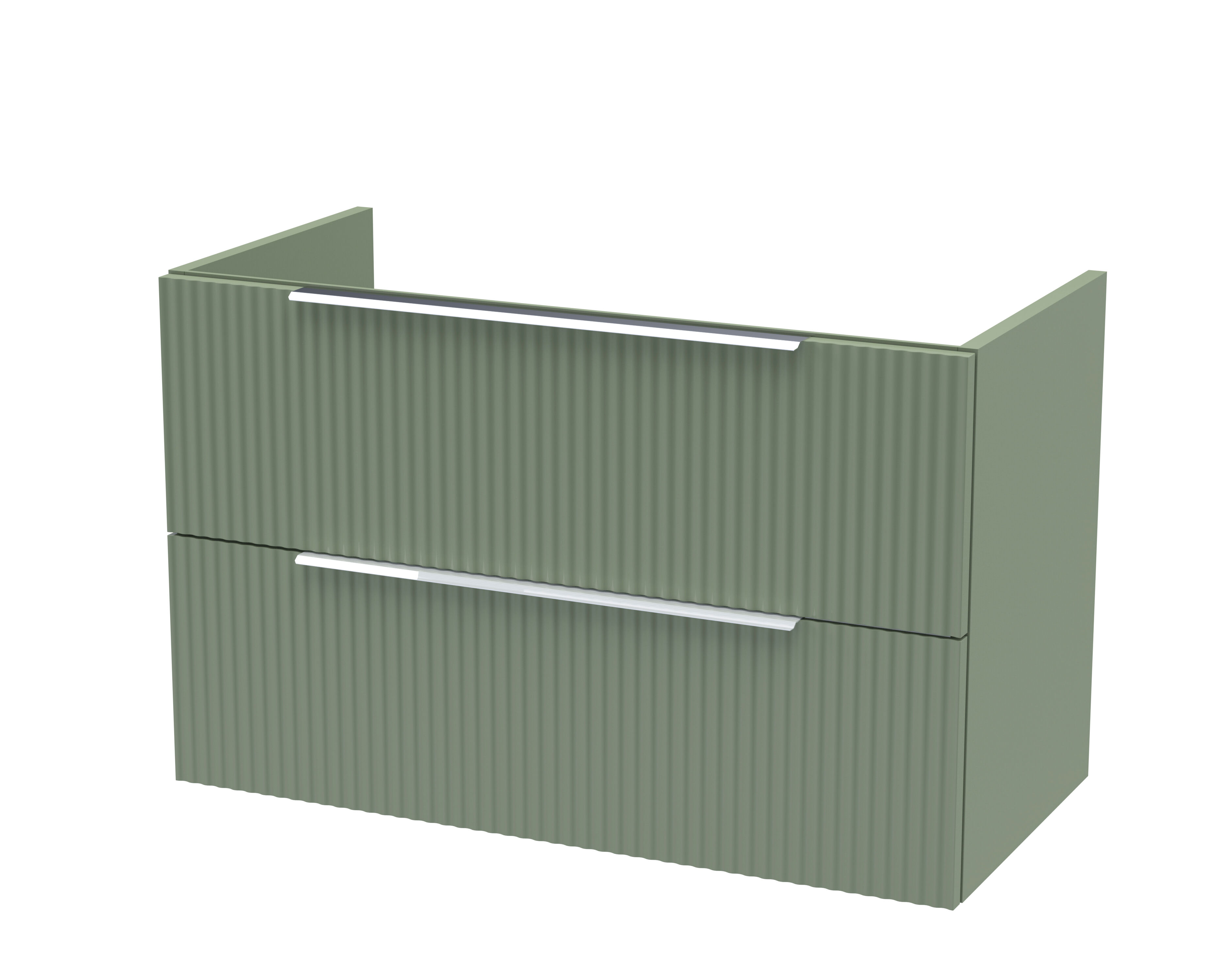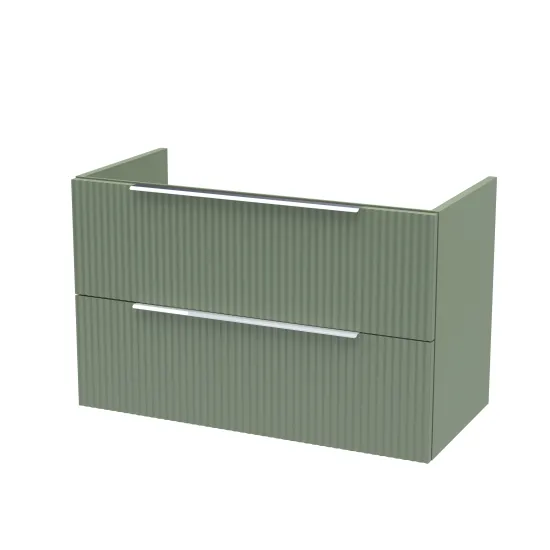 Hudson Reed Fluted 800mm Wall Hung 2-Drawer Unit - Satin Green