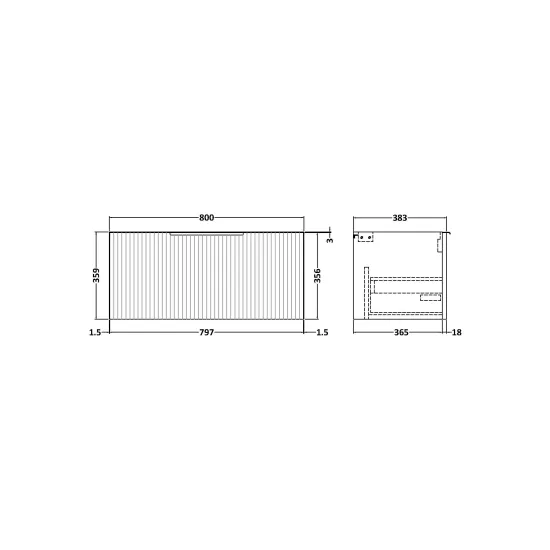 Hudson Reed Fluted 800mm Wall Hung Single Drawer Unit - Satin Grey