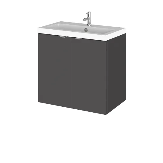 Hudson Reed Fusion Wall Hung 2 Door Vanity Unit 600mm - Gloss Grey