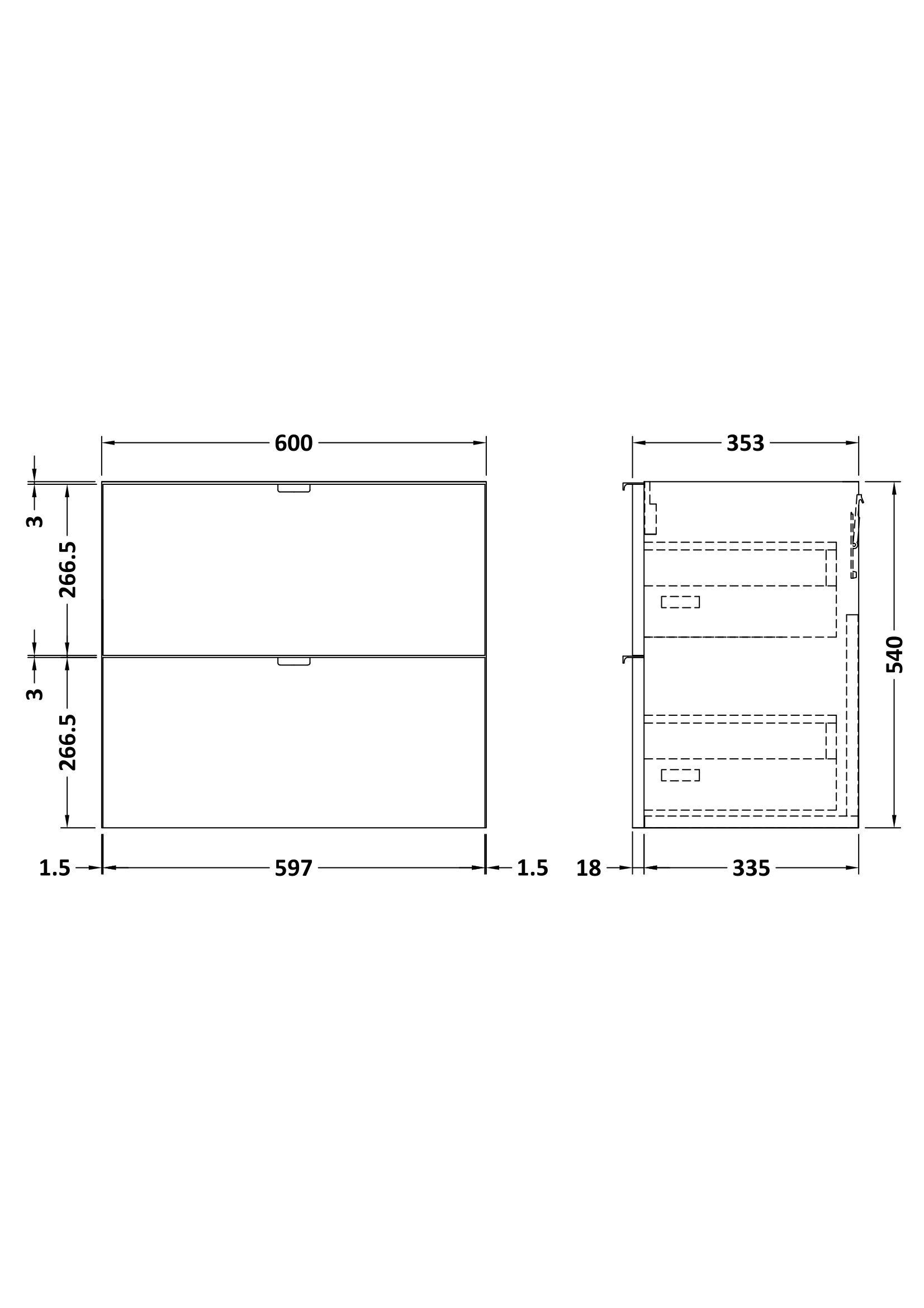 Fusion Wall Hung 2 Drawer Vanity Unit 600mm