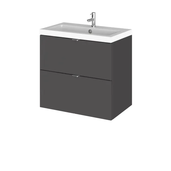 Hudson Reed Fusion Wall Hung 2 Drawer Vanity Unit 600mm - Gloss Grey
