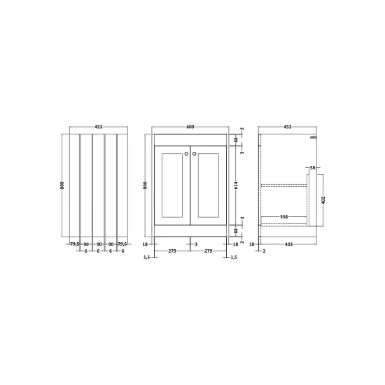 Synergy Henbury 600mm Pebble Grey 2 Door Floor Standing Vanity