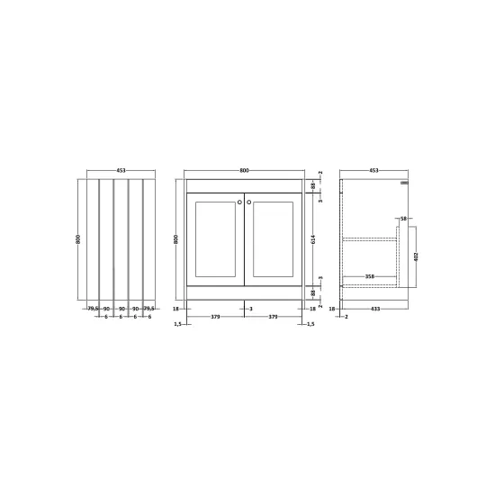 Synergy Henbury 800mm Gloss White 2 Door Foor Standing Vanity