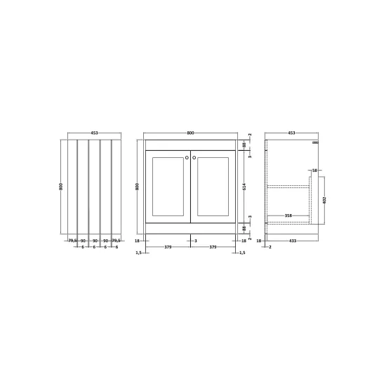Synergy Henbury 800mm Satin Soft Black 2 Door Floor Standing Vanity