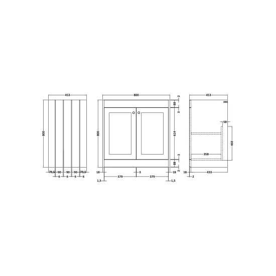 Synergy Henbury 800mm 2 Door Foor Standing Vanity - Satin Grey