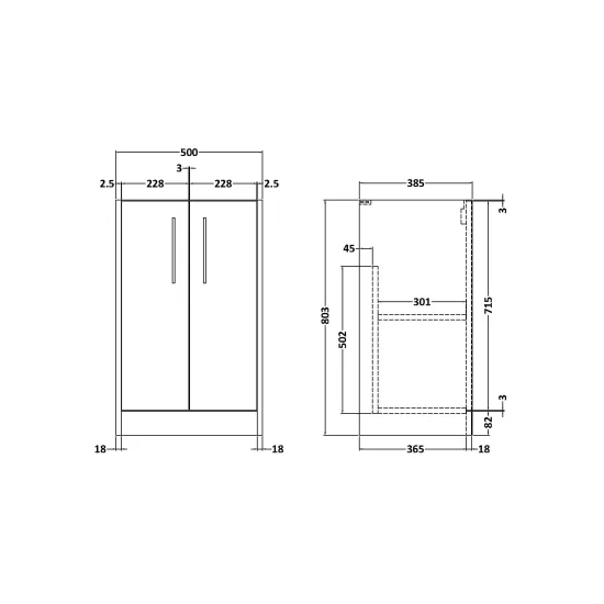 Contemporary floor standing design provides ample storage for all your bathroom toiletries and cleaning supplies.