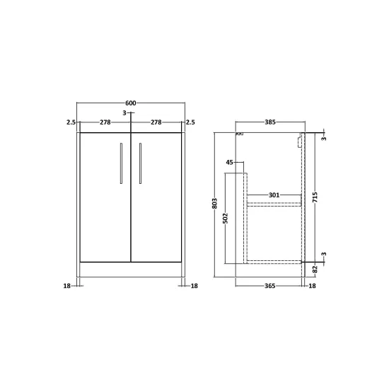 Contemporary floor standing design provides ample storage for all your bathroom toiletries and cleaning supplies.