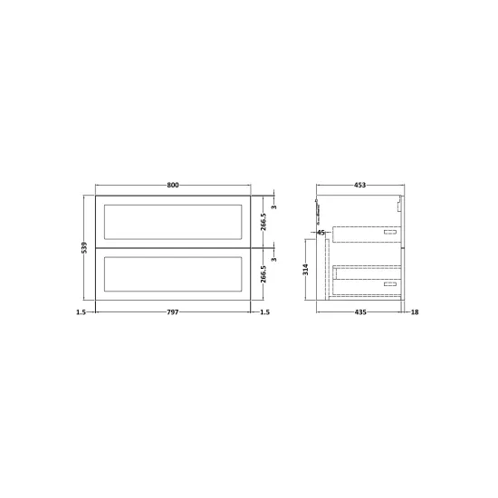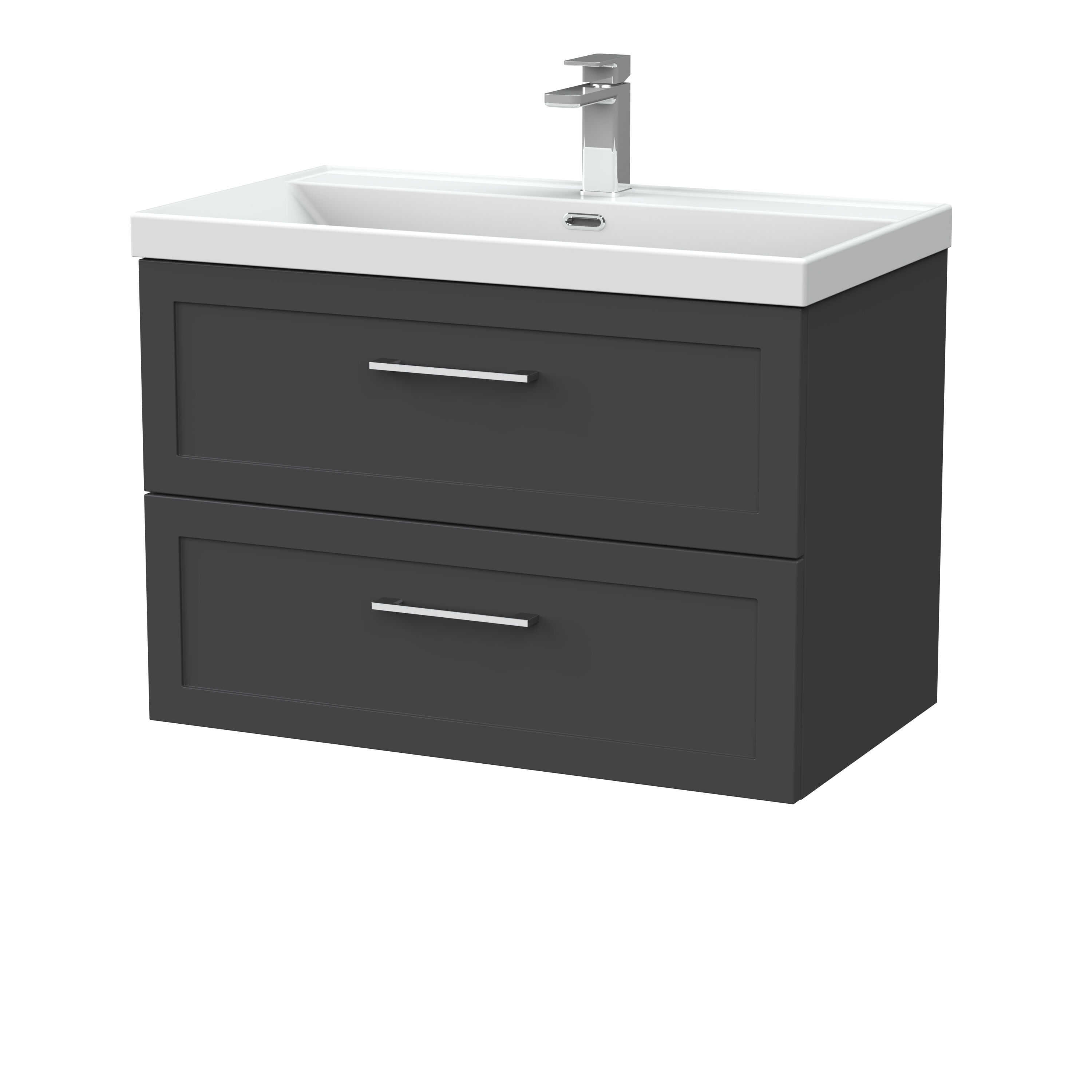 Nuie Lux Larck 800mm 2- Drawer Wall Hung Unit - Soft Black