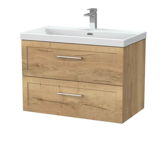 Nuie Lux Larck 800mm 2- Drawer Wall Hung Unit - Autumn Oak
