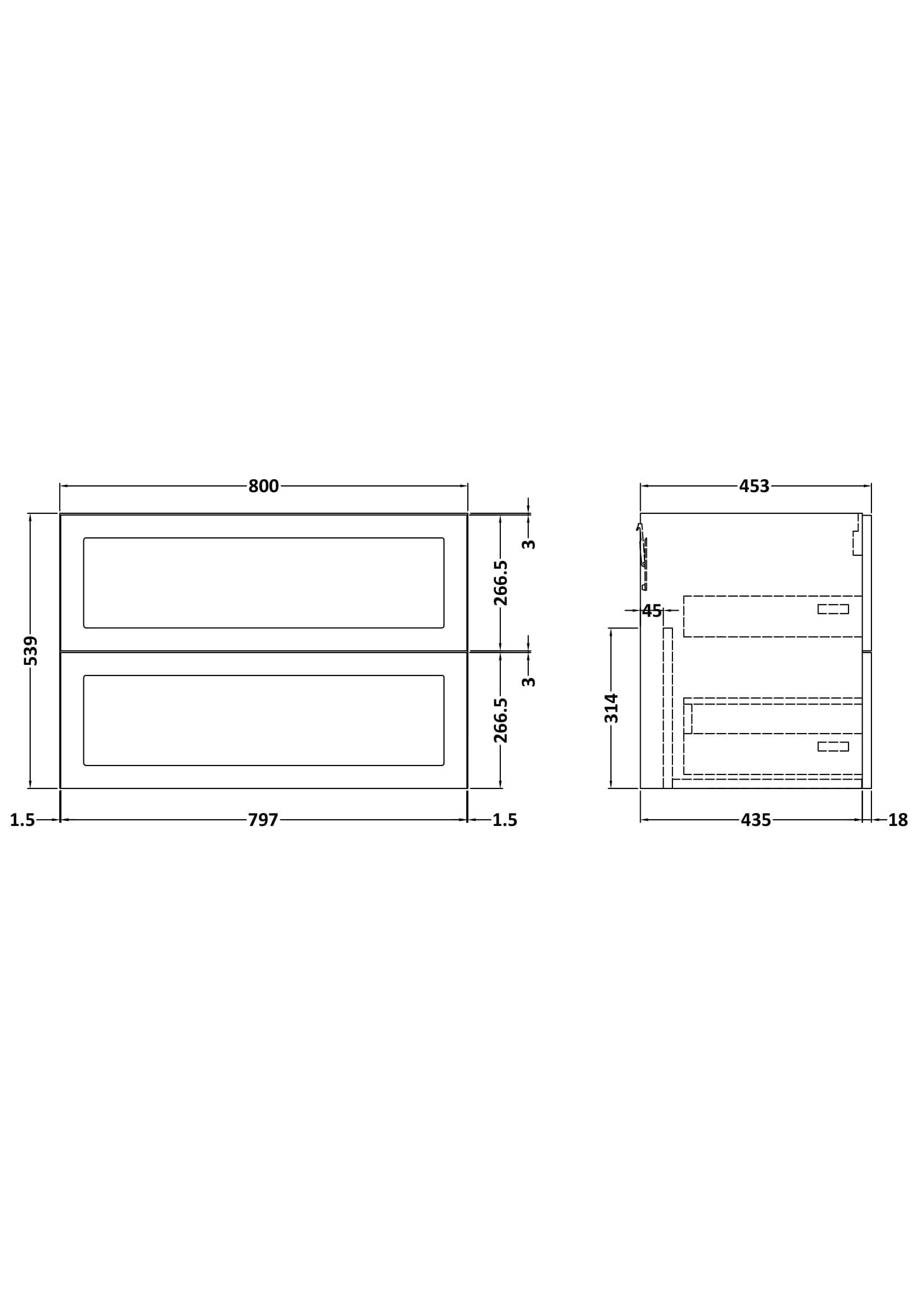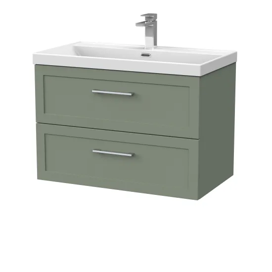 Nuie Lux Larck 800mm 2- Drawer Wall Hung Unit - Fern Green