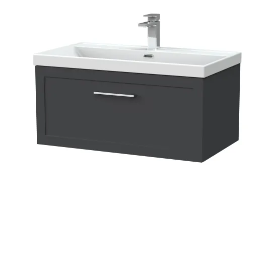 Nuie Lux Larck 800mm Single Drawer Wall Hung Unit - Soft Black